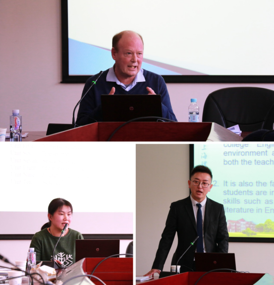在經(jīng)驗交流環(huán)節(jié),Gordon Callan和外語學院學術(shù)英語教學組組長陳征、畢志偉副教授分別介紹了各自在學術(shù)英語教學中在課程設(shè)置、教學內(nèi)容改革、教學方式創(chuàng)新、自主學習引導、學術(shù)研究討論等方面的做法和面臨的挑戰(zhàn)。