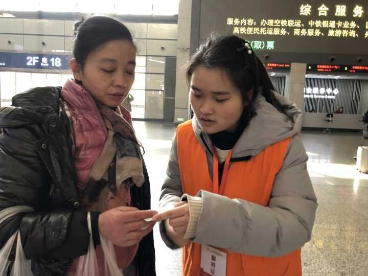 基礎學院大一新生黃天愛是一個土生土長的上海人,對于自己的第一個寒假她選擇從春運志愿服務開始。“培訓的時候,一位火車站的老領導說,‘我們要服務成千上萬個旅客,而對于某一位旅客,他們可能只接受了一次服務。’這句話在我心里留下了很深的印象,我想用自己的一點努力,向服務奉獻上海發展的人們傳遞一份溫暖,把上海的溫暖帶回家,把上理學子的風采帶回家”。