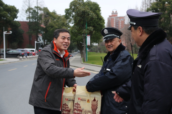 2月5日,農(nóng)歷己亥年大年初一,美麗的香樟園透著幾分春意,上理大家庭洋溢著歡樂祥和的新氣象。上午9時許,校黨委書記吳松,校黨委副書記、副校長盛春一行在黨委(校長)辦公室、保衛(wèi)處、后勤管理處等相關(guān)部門人員的陪同下,走訪慰問了春節(jié)期間堅(jiān)守在崗位的員工。