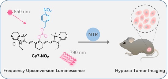 癌癥是目前影響人類壽命的主要因素,對癌癥的治療,除了手術(shù)以外,通常采用放療或化療的治療形式。但是,在治療的過程中,缺血缺氧腫瘤,即所謂的乏氧腫瘤對放化療敏感性較低,從而造成放化治療療效降低甚至無效。因此,在放化療之前,對腫瘤缺氧程度的評判顯得尤為重要,其中檢測腫瘤缺氧標志物是一種簡單有效的評判腫瘤缺氧程度的方式。在眾多乏氧腫瘤標志物中,硝基還原酶在大部分缺氧腫瘤中能大大表達。繆教授團隊通過采用近紅外熒光染料為發(fā)光報告中心,加以硝基還原酶檢測基團修飾,得到了近紅外光學響應的檢測探針,通過獨特的頻率上轉(zhuǎn)換檢測方式,得到了極低的檢測線和較高的信噪比,實現(xiàn)了對乏氧腫瘤在體檢測新的突破。該種檢測方法試劑制備簡單,對檢測儀器要求較低,可快速對乏氧腫瘤進行判別。該成果有望進一步應用于生物醫(yī)學檢測領(lǐng)域。