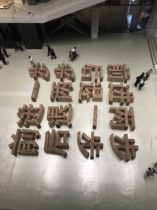 參觀過程中,一樓大廳中阿根廷藝術(shù)家恩里克·耶澤克《圍地》引起了師生黨員的強(qiáng)烈興趣。作品由4000多塊廢紙板組成,在一樓大廳近距離觀看時,很難看出作品想表達(dá)的含義,然而當(dāng)你走上二樓從高處俯視時,“前進(jìn)兩步,后退一步;前進(jìn)一步,后退兩步”的文字矩陣卻躍然眼前。強(qiáng)烈的視覺沖擊,引人反思啟蒙敘事對于“發(fā)展進(jìn)步”的過分迷戀,直面歷史發(fā)展本身的矛盾性與辯證性。一樓大廳中另一件作品,來自費(fèi)爾南多·桑切斯·卡斯蒂略《擺蕩》,則用搖擺不定的秋千,傳達(dá)出當(dāng)代無處不在的矛盾與人們無處安放的情感。西班牙藝術(shù)家克里斯蒂娜·盧卡斯《順時針》,是一個由360個時鐘構(gòu)建的機(jī)械裝置空間,藝術(shù)家傳達(dá)出對于工業(yè)社會與信息時代中自然時間被人為切割的憂慮之情。