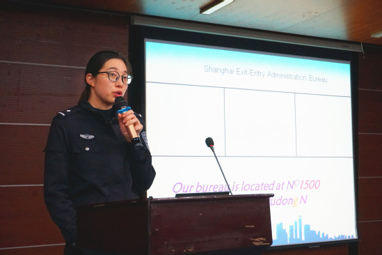 3月19日晚,上海理工大學2019春季國際學生全員大會在軍工路校區圖文信息中心報告廳順利舉行。上海市公安局文保分局警官、上海市出入境管理局警官、我校國際交流處副處長(留學生辦公室主任)蘇明旭、滬江學院副院長梁昱、保衛處張宸卿老師以及近300名留學生參加了全員大會。