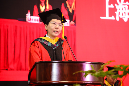 典禮開始前,現場播放了上理研究生原創畢業獻禮歌曲《遇見,再見》,用視頻總結他們這三年的“研途”生活,并祝愿畢業后的他們實現心之所夢。隨后,畢業典禮在雄壯的國歌聲中拉開帷幕。校黨委副書記、副校長盛春宣讀了關于授予研究生學位的決定。