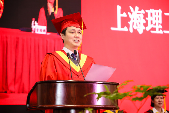 4月12日上午,上海理工大學2019屆研究生畢業典禮暨學位授予儀式在軍工路校區體育活動中心舉行。校長丁曉東,中國工程院院士、光電信息與計算機工程學院院長莊松林,校黨委副書記、紀委書記劉道平,校黨委副書記、副校長盛春,副校長、上海出版印刷高等專科學校校長陳斌,副校長蔡永蓮,副校長劉平,總會計師趙明,副校長張華出席典禮,來自相關學院院長以及學校各職能部處、學院負責人、教師代表、家長代表參加典禮。畢業典禮由副校長劉平主持。