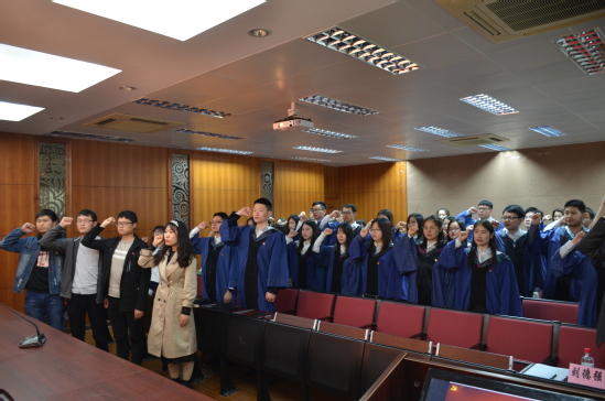 4月12日下午,理學院黨委書記劉德強將“學思踐悟”黨的十九大精神及黨的理論知識融入畢業生黨員主題教育中,為畢業生黨員上“最后一節黨課”,加強黨性修養。劉書記以“什么是中國共產黨黨員”開篇與畢業生黨員進行親切交流,圍繞“不忘初心 牢記使命”與大家分享自己的人生經歷,并對畢業生黨員提出要求:要提高自身素養,做政治合格的優秀黨員;要有敢于亮劍的精神,隨時隨地展現黨員身份,體現自身價值;要堅定理想信念,志存高遠。最后,劉書記用“珍惜”一詞送予大家,珍惜當下,展望未來,表達出對畢業生黨員的美好祝福。