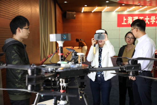 記者體驗我校5G無人機VR全景實時直播系統