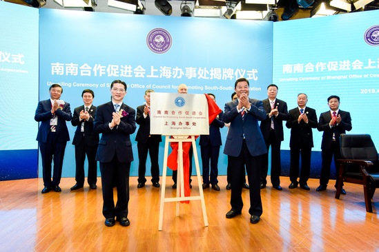 呂新華和周漢民共同為南南合作促進會上海辦事處揭牌