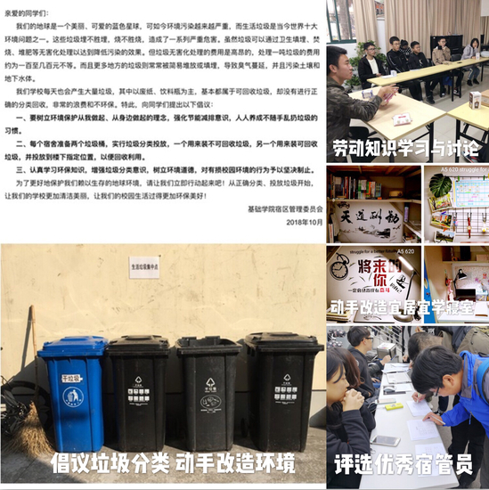 在基礎(chǔ)學(xué)院勞動(dòng)育人實(shí)施方案中,通過(guò)校內(nèi)外設(shè)點(diǎn)定崗開(kāi)展勞動(dòng)育人。校內(nèi)在食堂、教室、宿區(qū)、活動(dòng)室及校園內(nèi)易臟亂的角落設(shè)立勞動(dòng)崗,組織學(xué)生用力所能及的行動(dòng)改善就餐環(huán)境和校園環(huán)境。