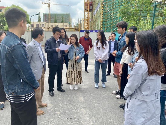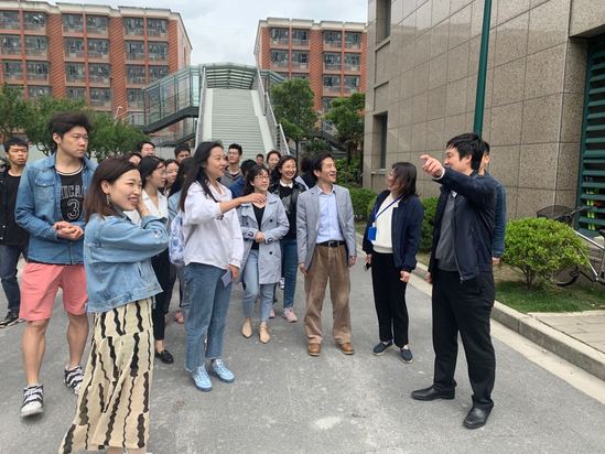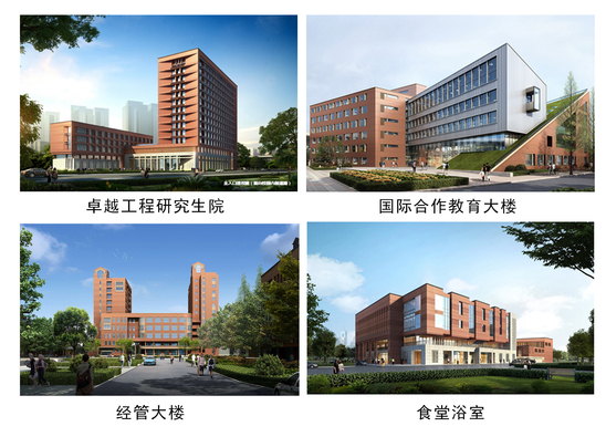 校領導向學生展示南校區新建一期工程中的食堂大樓
