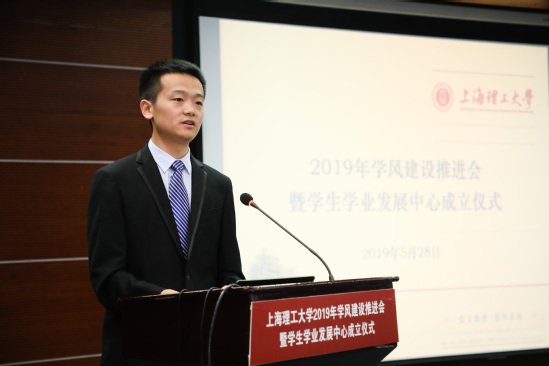 為進一步加強學生學業發展指導工作,推進優良學風建設,統籌全校資源,搭建學生學業困難幫扶體系和能力提升體系,5月28日上午,上海理工大學2019年學風建設推進會暨學生學業發展中心成立儀式在圖文信息中心一樓報告廳舉行。校長丁曉東,校黨委副書記、副校長盛春,副校長張華出席。學校相關職能部門負責人、各學院院長、教學副院長、學生工作負責人以及全體專兼職輔導員和學生代表參加。會議由學生工作部(處)部(處)長牛翔宇主持。