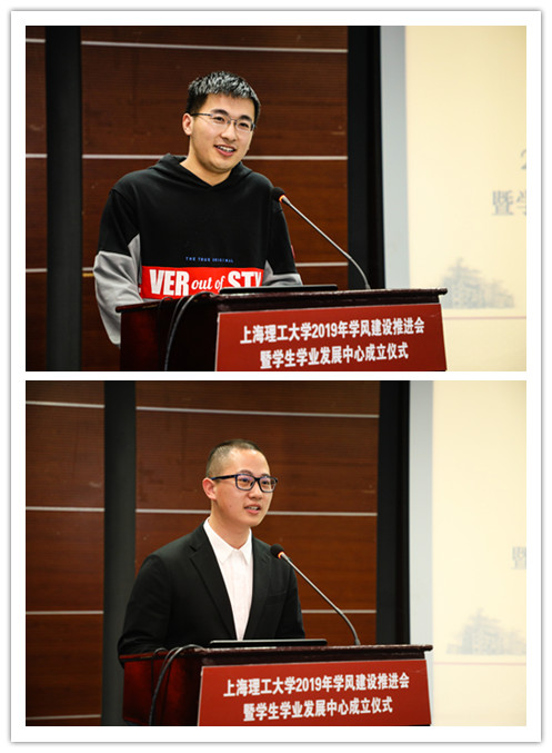 會上,能源與動力工程學院黨委書記馬靜波、機械工程學院黨委書記袁媛、環境與建筑學院院長黃遠東以及出版印刷與藝術設計學院黨委書記吳建安作為學院代表,分別以“推進教學管融合,促進學風建設”、“學在機械,追求卓越”、“加強學院內涵建設,構建學風建設新格局”以及“激發專業學習源動力,創設學風建設新局面”為主題,介紹了學院學風建設現狀、存在問題以及主要舉措。大學生朋輩講師代表、材料科學與工程學院學生劉志成聚焦“一名講師的幸福”,講述了參加朋輩講師團的初衷、變化和收獲,表達了作為大學生講師在輔導過程中不斷奮斗的幸福感。學生學業發展中心聯合委員會成員、醫療器械與食品學院學生張恒則以“齊心協力,建設優良學風”為主題,通過講述自身學習的感悟、身邊同學的學習狀態,從提升學生學習動力、加強學風建設舉措等方面提出了學生需求和建議措施。