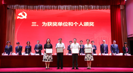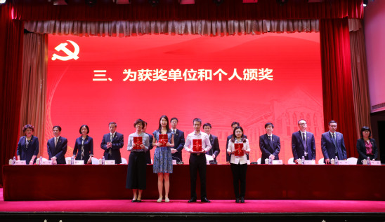 大會在雄壯的國歌聲中拉開序幕。黨委副書記孫躍東宣讀了入選教育部“雙創(chuàng)”工程和上海市基層黨建“質(zhì)量提升工程”的先進集體,獲得市、校“兩優(yōu)一先”榮譽稱號的先進集體和個人、獲得學校2019年“卓越黨支部”教工黨建案例的基層支部等多個表彰決定。黨委常委為獲獎代表頒發(fā)了獎牌和證書。