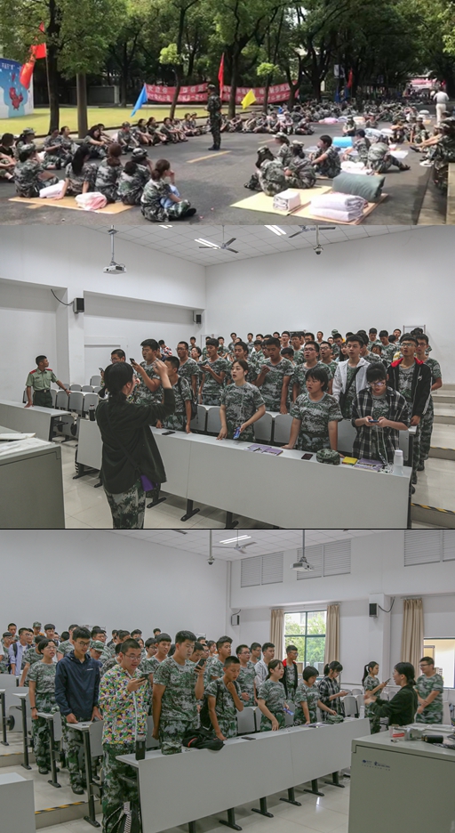學校歷來重視軍訓新生的思想政治教育,除軍事訓練外,各種理論課程也在同步進行。軍事理論課教學于每周一至周五晚分兩周先后在三個校區進行,由校領導、輔導員、部分職能部門負責人等50人為新生授課,同時邀請國防大學政治學院張鑫和李志剛教授開展專題講座,課程以聽寫說看的形式,從軍事思想、軍事高技術、國防和周邊安全四方面為新生帶來了一場別開生面的軍事知識課堂,今年軍事理論課教學還首次嘗試將新時代中國說(大學生講思政)慕課融入教學內容。接下來,學校還將開設新生認知教育課程,讓新生盡快熟悉學校制度,提升理論素養,堅定理想信念,在軍訓中精進不休。