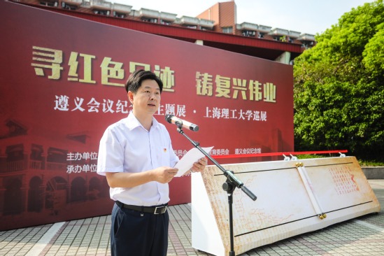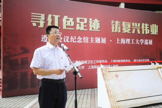 為深入開展“不忘初心、牢記使命”主題教育,弘揚(yáng)艱苦奮斗的革命精神,9月12日上午,“遵義會(huì)議、偉大轉(zhuǎn)折——遵義會(huì)議紀(jì)念館主題展覽”上海理工大學(xué)巡展拉開了序幕。本次主題展覽由中共上海市教育衛(wèi)生工作委員會(huì)、上海市教育委員會(huì)、遵義會(huì)議紀(jì)念館主辦,上海理工大學(xué)、上海高校博物館育人聯(lián)盟承辦,以“尋紅色足跡鑄復(fù)興偉業(yè)”為主題。市教衛(wèi)工作黨委副書記、市教委副主任李昕,遵義市委常委、副市長、上海市第三批援黔聯(lián)絡(luò)組組長尼冰,遵義會(huì)議紀(jì)念館館長陳松,市教委德育處處長沙軍,校領(lǐng)導(dǎo)吳堅(jiān)勇、丁曉東、劉道平、盛春、劉平、趙明、張華,校黨委常委、組織部長孫紅,校黨委常委、宣傳部長葉磊和全體中層正職干部出席開幕式,開幕式由校黨委副書記孫躍東主持。