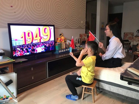 師生在大禮堂觀看了慶祝大會、閱兵式以及群眾游行盛況