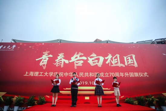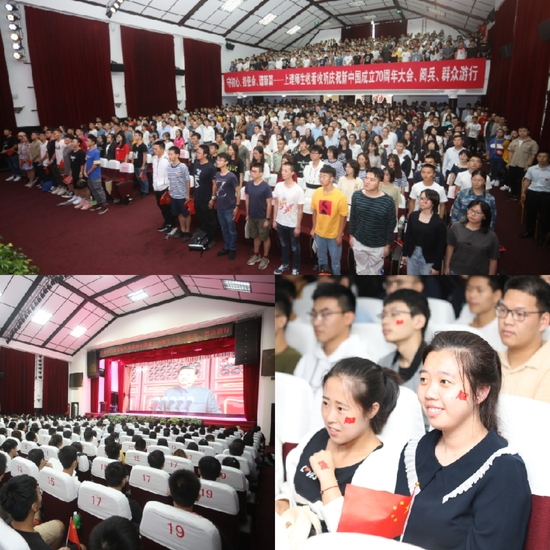 道路兩旁鮮艷的五星紅旗,道路上方醒目的祝福橫幅,教學樓里裝飾的“慶祝新中國成立70周年”的彩色貼紙……早在國慶前,上理校園里就已經洋溢著歡慶的氛圍,全體上理人期待著為共同慶賀同一個生日——新中國成立70周年。