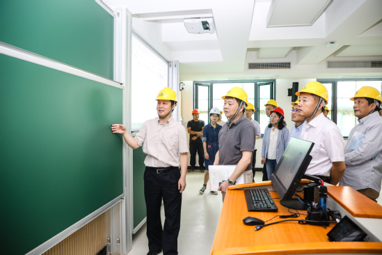 新教室立馬啟用會不會影響到健康?教室墻面磁性書寫墻能使用多久?智能教室如何課后預約使用?講臺旁能否加一個茶杯架?師生們也根據平時的教室使用習慣提出了自己的建議。由此,參觀現場儼然變成了一場小型研討會。“關于磁性書寫墻的選擇,我們前期進行了充分調研,從6種備選涂料中選擇了更環保更耐用的一款,耐擦洗次數10萬次以上。”基建處處長魏林解釋道。而對于智能教室的課上課后使用等意見,教務處處長朱堅民則表示,教室的實時錄播系統可以讓老師們邊上課邊錄制視頻,一方面可以實現遠程對教師課堂進行督導,另一方面又方便同學們課后回顧課堂所學,將有效提升課堂質量。