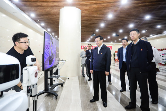 10月16日,上海市人民政府常務副市長陳寅同志來到第二批“不忘初心、牢記使命”主題教育聯系點上海理工大學,檢查指導主題教育開展情況。市委主題教育第八巡回指導組組長毛放,市教衛工作黨委副書記、市教委副主任李昕,市發改委副主任陳石燕及市政府相關委辦局同志陪同調研。陳寅同志首先觀看了學校主題教育匯報展板,實地考察了未來光學實驗室、智能機器人、裸眼3D等科技成果,隨后召開調研座談會。學校黨委書記吳堅勇、校長丁曉東,莊松林院士、顧敏院士及黨政班子成員、相關部門負責人參加調研座談會。