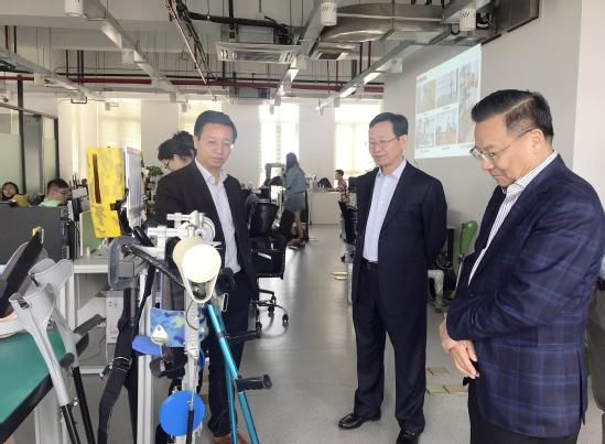 喻洪流教授向方會長介紹研究所的康復器械創新設計