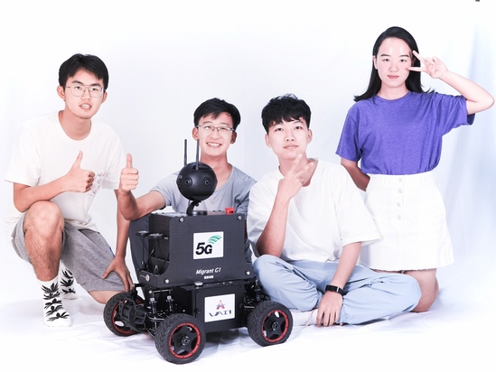 在4G時代,影像上傳帶寬僅為10兆,傳輸分辨率嚴重不足,影像傳輸時延高于100毫秒,在拍攝設備高速移動時,經常出現畫面震動,傳輸失真等諸多問題。隨著5G時代的到來,李涵團隊通過技術革新解決了以上痛點——利用5G網絡切片降低時延,多接入邊緣計算提升帶寬,全景影像實時增強穩定性避免抖動,他們整合創新這三大技術,自主研發了一套全新的影像傳輸系統。