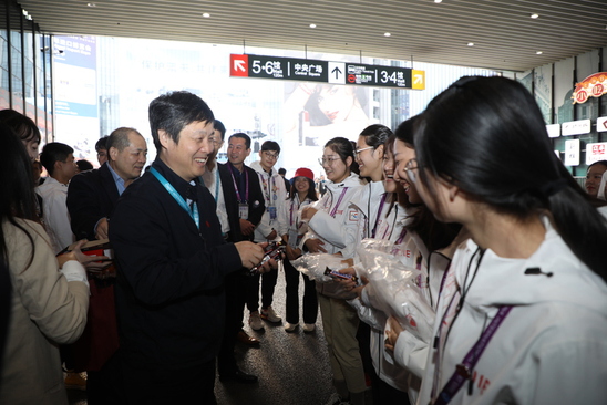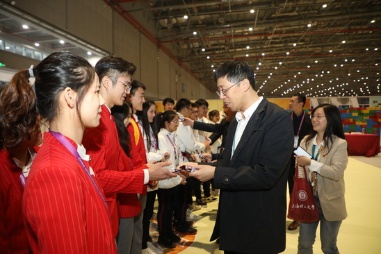 11月7日下午,校黨委書記吳堅勇,校長丁曉東,黨委副書記、紀委書記劉道平,黨委副書記孫躍東,黨委副書記、副校長盛春一行親切慰問了在國家會展中心服務的上理“小葉子”——進博會志愿者,為志愿者們加油鼓勁,學校黨委(校長)辦公室、團委相關人員陪同慰問。