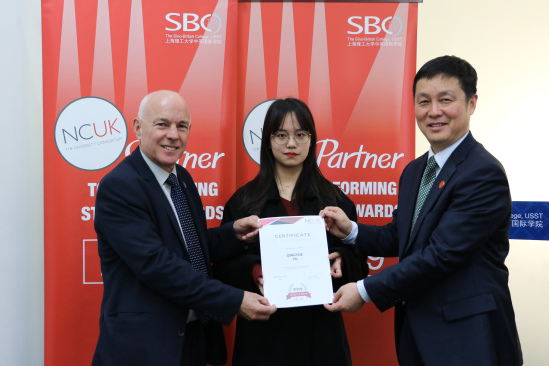 會議正式開始前,丁曉東校長親切會見新一任英國北方大學聯合會首席執行官John Brewer,并與他進行會談。John Brewer在講話中表達了英國北方大學聯合會對學校合作辦學的支持和重視,希望在將來能加大雙方的合作深度。會談后,丁曉東校長和John Brewer共同為獲得英國北方大學聯合會2019年度“最佳商科學生”獎的中英國際學院2017級工商管理專業的虞清月同學頒發證書。 “我很榮幸能獲得這一榮譽,這是對我努力學習的認可,也是對我未來學習生活的激勵。我非常感謝學院給予我的平臺和所有老師對我的教導與幫助。” 虞清月同學高興地說道。