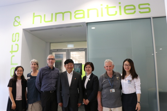在澳大利亞,代表團首先訪問了埃迪斯·科文大學,與該校校長Steve Chapman、副校長王嵬等進行了親切地會談,并簽署了兩??蒲泻献鲄f議備忘錄。隨后分別與研究生院、人文與藝術學院代表進行了洽談,雙方就兩??蒲泻献骶唧w實施形式和方案進行了溝通,并提出在國家留基委項目申請、澳大利亞文學文化研究、博士生培養方面可以開展更加緊密的合作。代表團還參觀了該校播音實踐教學中心、藝術設計中心以及其他教學設施,并會見了在該校就讀聯合培養博士師資項目的外語學院孫海影老師和已獲得該校教育學博士學位的外語學院2010級研究生金惠芬。我校與澳大利亞埃迪斯·科文大學有著20余年的合作歷史,曾合作舉辦五屆澳大利亞文化周活動,并于今年上半年簽署了聯合培養博士師資協議。