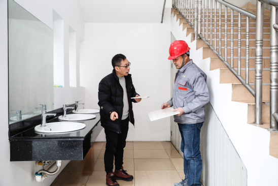 前不久,后勤網絡報修系統收到了來自學生工作部(處)的一條報修信息。原來是學生工作部(處)門口的花崗石板出現了多處壞損,而這個問題卻讓后勤維修人員“一個頭,兩個大”。因為若將所有花崗石換掉,工程量較大,將造成一定的浪費,工程時間較長,也將影響師生正常的工作與學習。在大家難以拍板的時候,王維海帶領大家擬定了初步方案——在美觀與經濟的權衡之下,選擇僅將出現損壞的花崗石板進行切割,換成相似石板。然而,下班回家后,王維海卻遲遲沒有放下心,因為花崗石板出現壞損的主要原因是停車時的撞擊,所以僅僅將石板換掉仍舊“治標不治本”。因此,這位“從不關機”的“老法師”在家中苦思冥想,決定繼續減少新裝石板面積,用成本更低的水泥防撞臺階填補空缺,這樣也徹底解決出現壞損的根本問題。“對于后勤來說,既要修,更要修得合理。我們要有‘主人翁’的態度,站在學校的角度、站在師生的角度去考慮如何用最低的成本,用最周到的服務給予大家方便。”王維海說道。