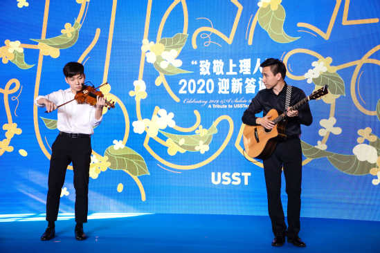 伴隨著滬江之聲教工合唱團深情悠揚的歌聲和師生攜手演奏的弦樂,迎新答謝會正式拉開帷幕。主題視頻《致敬追夢人》通過一幕幕上理印記和一件件豐收成果,集中展現了上理人初心如磐、使命在肩的責任擔當,描繪了上理人堅韌不拔、追求卓越的精神底色。