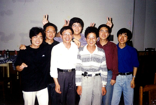 林建華(左一)與班主任嚴凌(左二)、老師馬曉旦(左三)及同寢室同學合影
