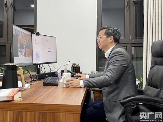 喻洪流教授作為圓桌論壇嘉賓在網絡會議中發表演講(央廣網發 上海理工大學供圖)