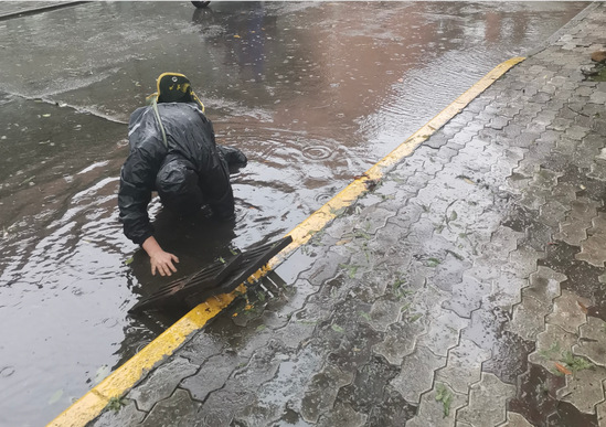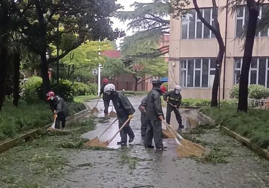 上海財(cái)經(jīng)大學(xué)后勤保障人員沖在第一線,應(yīng)急搶險(xiǎn)隊(duì)伍時(shí)刻待命,臺(tái)風(fēng)中,不畏風(fēng)雨,堅(jiān)守崗位,清掃校園,疏通管道,及時(shí)處理、及時(shí)上報(bào),維護(hù)健康平安校園,保障師生安全度汛。
