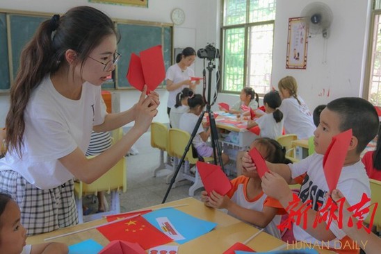 愛心助學,情暖鄉村。在兵書閣村,實踐團在縣溪鎮鍋沖鄉小學開展了以“初心憶黨史,剪繪贊中國”為主題的黨史微課堂。通過聽、講、頌、答、唱等互動互學,帶領小朋友以生動活潑的形式認識具有重要意義的黨史轉折點、時間線,通過剪紙和拼貼畫的新穎形式拓寬紅色教育范圍,鼓勵鄉村兒童也能賡續紅色基因,講好黨史故事。