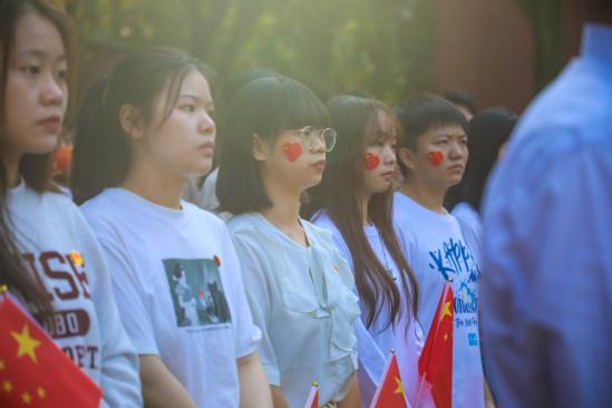 只見升旗手們護(hù)衛(wèi)著鮮艷的五星紅旗入場,他們著裝整齊、步伐矯健。現(xiàn)場師生在會(huì)林廣場前整齊列隊(duì),伴隨著雄壯的《義勇軍進(jìn)行曲》響徹校園,向鮮艷的五星紅旗致以莊嚴(yán)的注目禮,共同為祖國送上誠摯的生日祝福,也為中國共產(chǎn)黨成立100周年獻(xiàn)禮。