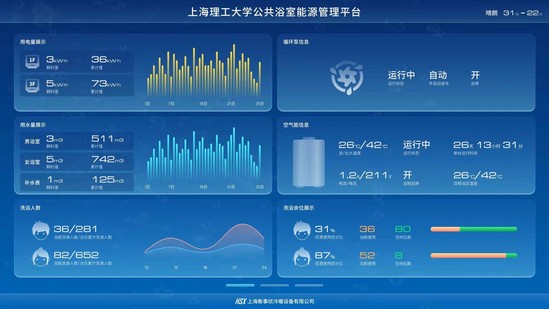 在遍布歷史保護建筑的百年校區進行基礎設施更新,猶如“螺螄殼里做道場”,但更考驗一所高校治理能力的是后期運營維護。“根據40天使用率監控,男女浴室總使用人數達86673人次,平均峰值2400人次/天”“20點后熱水明顯減少,擬增加變頻增壓裝置,增加熱水壓力。”“網紅”浴室上線了能源管理平臺系統,每天都會進行系統健康巡檢,結合數據和師生使用反饋,改進管理服務。