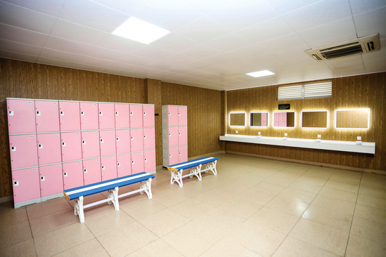 粉紅粉藍的“ins”風裝修、可觸摸調整燈光的梳妝臺、智能手環開關的儲物柜……新學期,軍工路校區北區的第一浴室煥然一新。“網紅”浴室不僅有“顏值”,更有貼心的細節:全新的電子淋浴設備,只需要在手機端操作,就可以實現水控轉賬,同學們不用擔心忘記帶卡或校園卡遺失、掉落在浴室的情況。更衣室則貼心地鋪設了地暖,洗完澡,站在溫暖的地板上,讓人感覺從腳底板暖到心間。