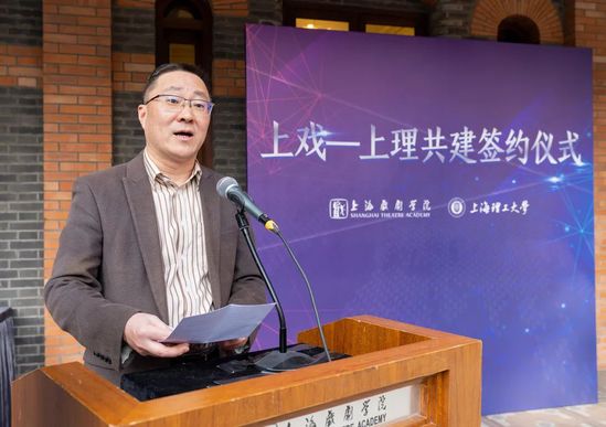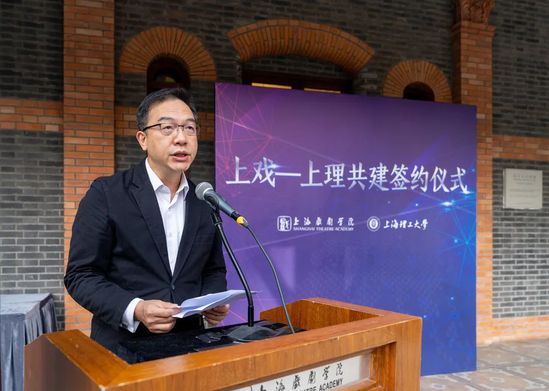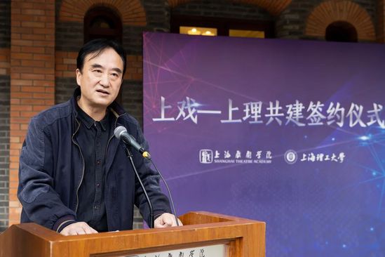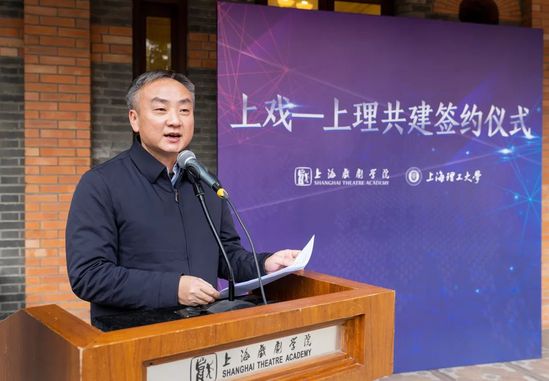 簽約儀式上,上海戲劇學(xué)院院長黃昌勇和上海理工大學(xué)校長丁曉東簽署了共建協(xié)議,并為“兩院三中心”揭牌。