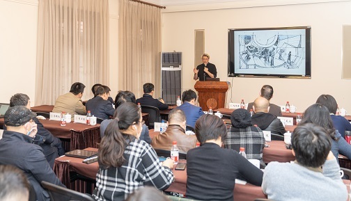 隨后,科藝融合創新論壇舉行。知名藝術家Alexander Fabian Brandt(飛蘋果)受邀作主題為“沉浸式教育”的演講,分享了參建上海天文館、中國古運河博物館等項目的創作過程和感受,展示了故事、空間、媒體、互動等元素在沉浸式展覽中的交叉運用。同濟大學副校長、設計創意學院院長婁永琪教授發表主題為“科藝融合,設計創新”的報告,分享了“設計驅動的創新、驅動創新的設計”這一核心理念,介紹了設計創意學院相關專業、實驗室、論壇、重大項目及同濟黃浦設計創意中學等建設和發展情況。