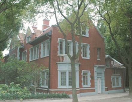 思福堂是磚木結構建筑,清水紅磚墻,白色窗套,開窗方正,南立面有浮雕式圓拱,陽臺裝飾卷草紋柱子,三角形山墻外飾以名木框架。曾用作女教員宿舍。