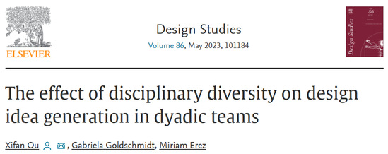 近日,版藝學院教師歐細凡在《設計研究》(Design Studies)上發表了題為“學科多樣性對二元團隊設計創意產生的影響”(The effect of disciplinary diversity on designidea generation in dyadic teams)的研究成果,上海理工大學為第一通訊單位,歐細凡教師為第一作者和通訊作者,以色列理工學院Gabriela Goldschmidt教授和Miriam Erez教授為聯合作者,這是上海理工大學首次在該設計頂級期刊發表文章。
