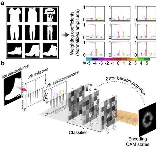 該研究利用全光機器學習將數據特征轉化為軌道角動量狀態的通用機制,可以實現任意信息在軌道角動量維度上的自由轉換。光學機器通過學習智能軌道角動量編碼這一“新課程”,打開了以光速對特定數據庫和圖像進行軌道角動量編碼的新大門,同時也打破了軌道角動量域中光學降維的瓶頸。該技術有望開拓光學機器學習在高容量、高安全經典及量子光學中的應用方向。