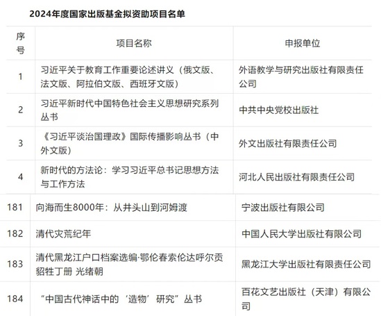 2024年度國家出版基金資助項目評審結果公告鏈接: