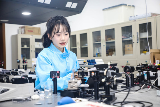 光纖通信技術,是指一種利用光與光纖傳遞信息的方式。從手機通信,到海底光纜,這些都是光纖通信的應用范圍。而成為一名優秀的光纖通信員不僅需要具備光學工程、通信理論、文獻檢索、實驗操作等能力,還需要擁有獨立思考與解決問題、創新思維等方面的綜合素質。為了不斷向目標靠近,她不敢懈怠,努力修煉:去“蹭”研究生的光纖通信技術專業課;跨學院選修了物理系的光學理論課,只為打好扎實的光學理論基礎;以綜合排名第一的成績獲得了上海市獎學金……