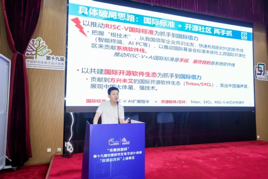 同時,企業(yè)代表安謀科技(中國)有限公司市場經(jīng)理宋斌作為贊助企業(yè)代表,對大賽的成功舉辦表示祝賀,他堅信在教育部學(xué)位與研究生教育發(fā)展中心、中國科協(xié)青少年科技中心、中國電子學(xué)會的帶領(lǐng)下,中國研究生電子設(shè)計競賽一定會發(fā)揮更大的引領(lǐng)作用。上海大學(xué)王瑞教授和上海理工大學(xué)機械工程學(xué)院2023級碩士研究生連越,分別作為評委及參賽學(xué)生代表進行宣誓。