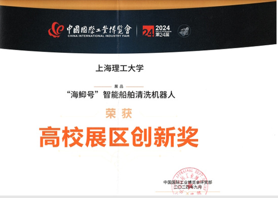 我校參展工博會工作得到了有關部門的高度肯定。學校獲評 “高校展區優秀組織獎”,項目“海鮣號”水下裝備智能清洗機器人獲評“高校展區創新獎”。展會期間,我校展品受到上海教育電視臺、上觀新聞、人民網等知名媒體的高度關注,并被報道。芯片高低溫智能測試系統,項目還參加了現場路演活動。