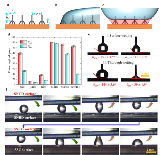 納米蒺藜結(jié)構(gòu)示意圖和兩種浸潤(rùn)模式