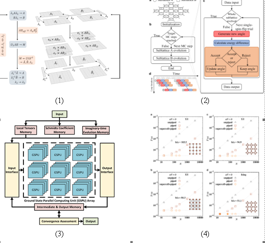 多體系統(tǒng)數(shù)值模擬的核心挑戰(zhàn)源于其希爾伯特空間維度隨粒子數(shù)增加呈現(xiàn)指數(shù)級(jí)擴(kuò)張。然而,傳統(tǒng)基于CPU/GPU的數(shù)值計(jì)算方法面臨三重局限:首先,計(jì)算復(fù)雜度隨系統(tǒng)規(guī)模急劇攀升導(dǎo)致運(yùn)算效率顯著下降;其次,存儲(chǔ)需求呈超線性增長(zhǎng),嚴(yán)重制約可計(jì)算規(guī)模;再者,能耗效率比隨維度增加快速惡化。這些固有缺陷使傳統(tǒng)計(jì)算方法在求解大規(guī)模多體系統(tǒng)時(shí)遭遇維數(shù)災(zāi)難。為此,該研究團(tuán)隊(duì)創(chuàng)新性提出基于硬件加速的多體計(jì)算架構(gòu),通過(guò)優(yōu)化并行計(jì)算和充分挖掘現(xiàn)場(chǎng)可編程邏輯門(mén)陣列的可編程特性,在多體系統(tǒng)數(shù)值模擬中實(shí)現(xiàn)了計(jì)算效率的顯著提升,為解決高自由度量子多體問(wèn)題提供了新范式。