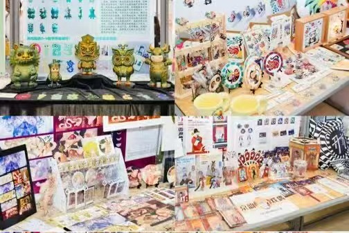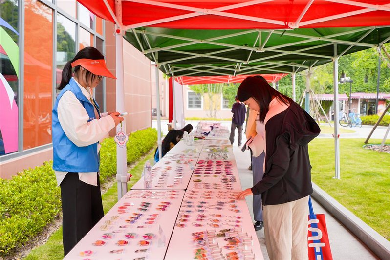 本屆畢業設計展覽現場特別增設了主視覺與畢業設計作品衍生文創市集和“虎兔龍蛇”時光驛站打卡區?!叭雽W年份是虎年,經歷了四個四季輪回,今年已是蛇年,將生肖裝置與畢業設計展打卡墻結合起來,也算是今年畢設展的‘小巧思’”畢設主視覺設計相關同學介紹道。