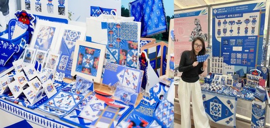 視覺(jué)傳達(dá)專(zhuān)業(yè)學(xué)生曾慧婷的《“布語(yǔ)心橋”系列文創(chuàng)設(shè)計(jì)》,將瀕臨失傳的上海安亭藥斑布紋樣進(jìn)行幾何化重構(gòu),提取鳳凰、鹿等十二種祥瑞紋樣的療愈基因,開(kāi)發(fā)出符合Z世代情感需求的文創(chuàng)產(chǎn)品。“我把重點(diǎn)放在藥斑布中具有吉祥寓意的傳統(tǒng)紋樣中,將其中承載千年的祝福轉(zhuǎn)化為當(dāng)代設(shè)計(jì)語(yǔ)言,通過(guò)藝術(shù)化的表達(dá)成為年輕一代的‘好運(yùn)符’,這是否能成為治愈焦慮的密碼?”曾慧婷的創(chuàng)作筆記里,記錄著對(duì)非遺技藝創(chuàng)新傳承的新路徑以及對(duì)當(dāng)代青年的情感鏈接與共鳴。