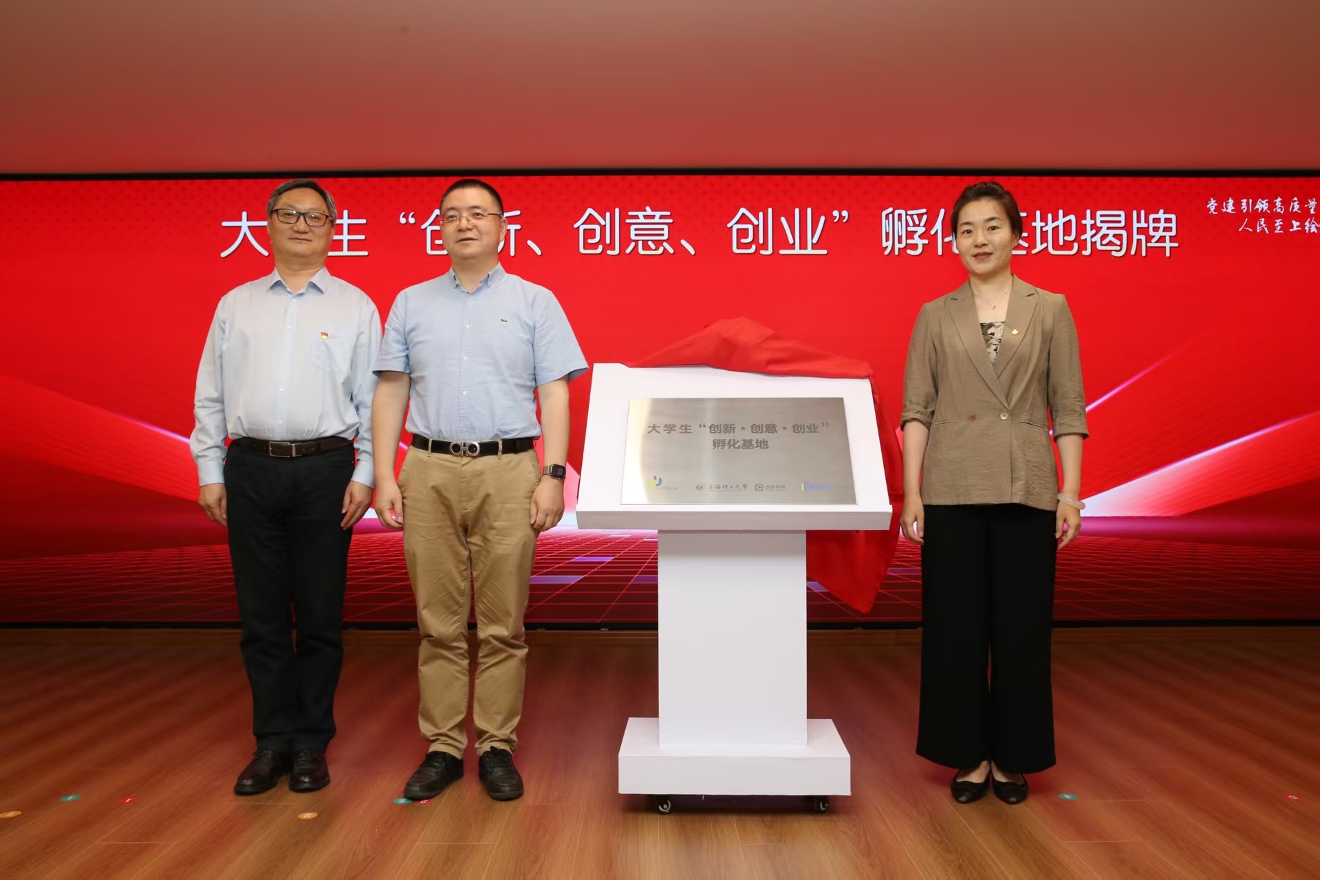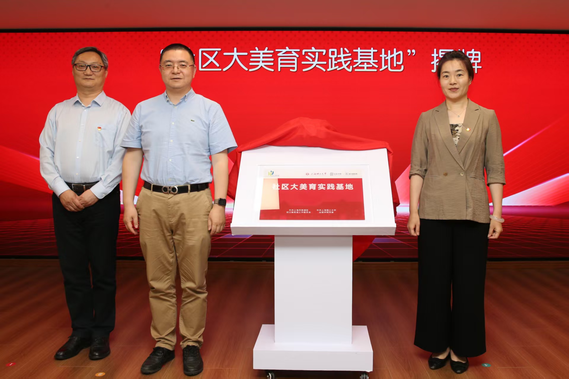上理出版學院、鳳城巷園區和控江路街道代表共同為大學生“創新、創意、創業”孵化基地、“社區大美育實踐基地”揭牌。
